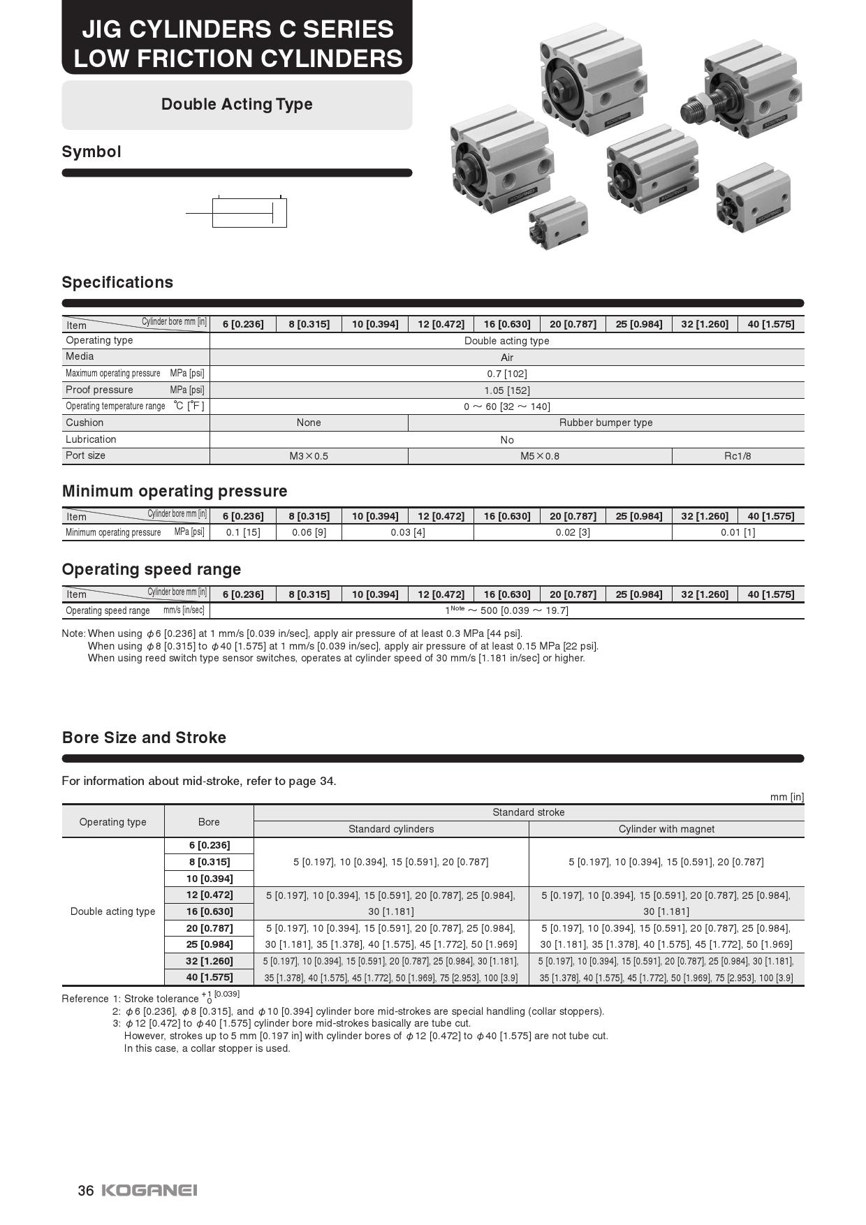 Jig cylinder C series low-friction cylinders