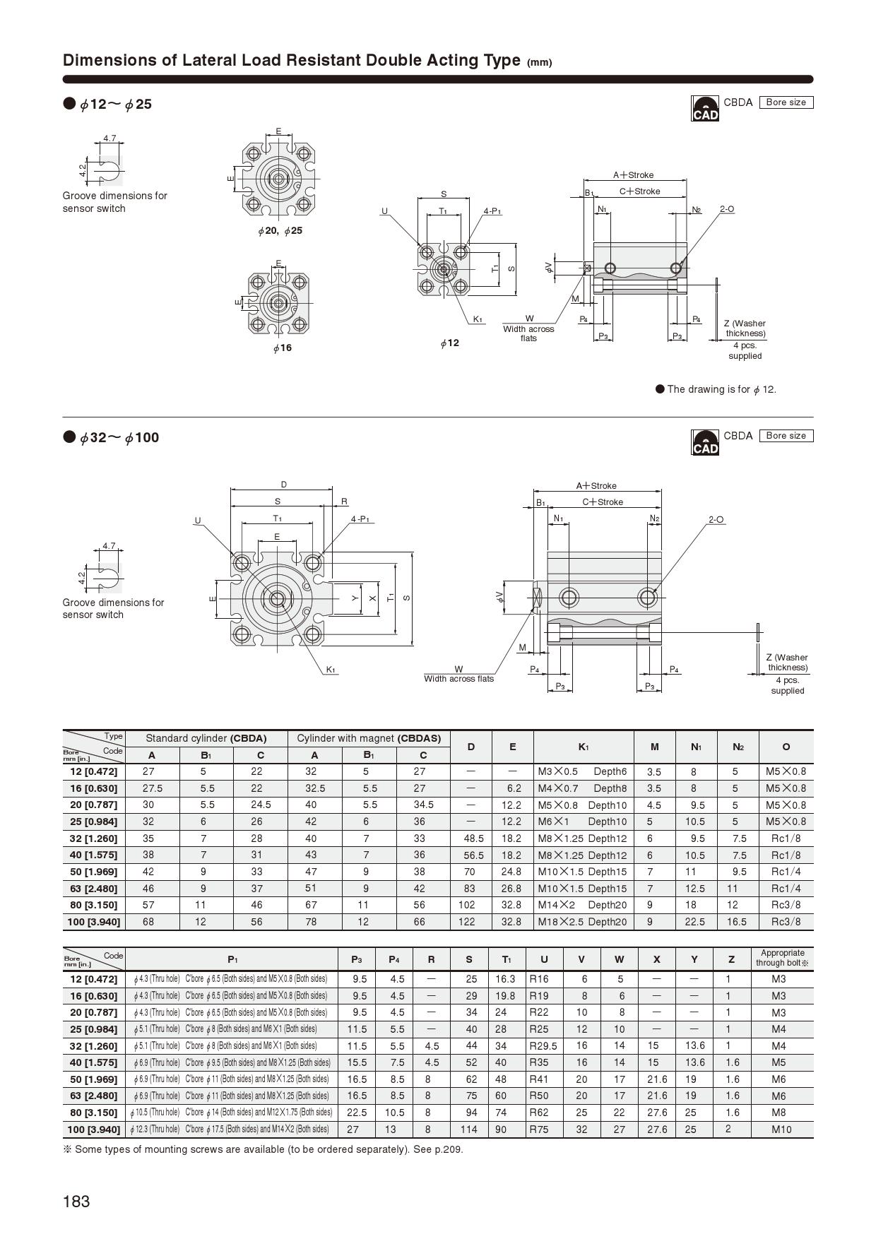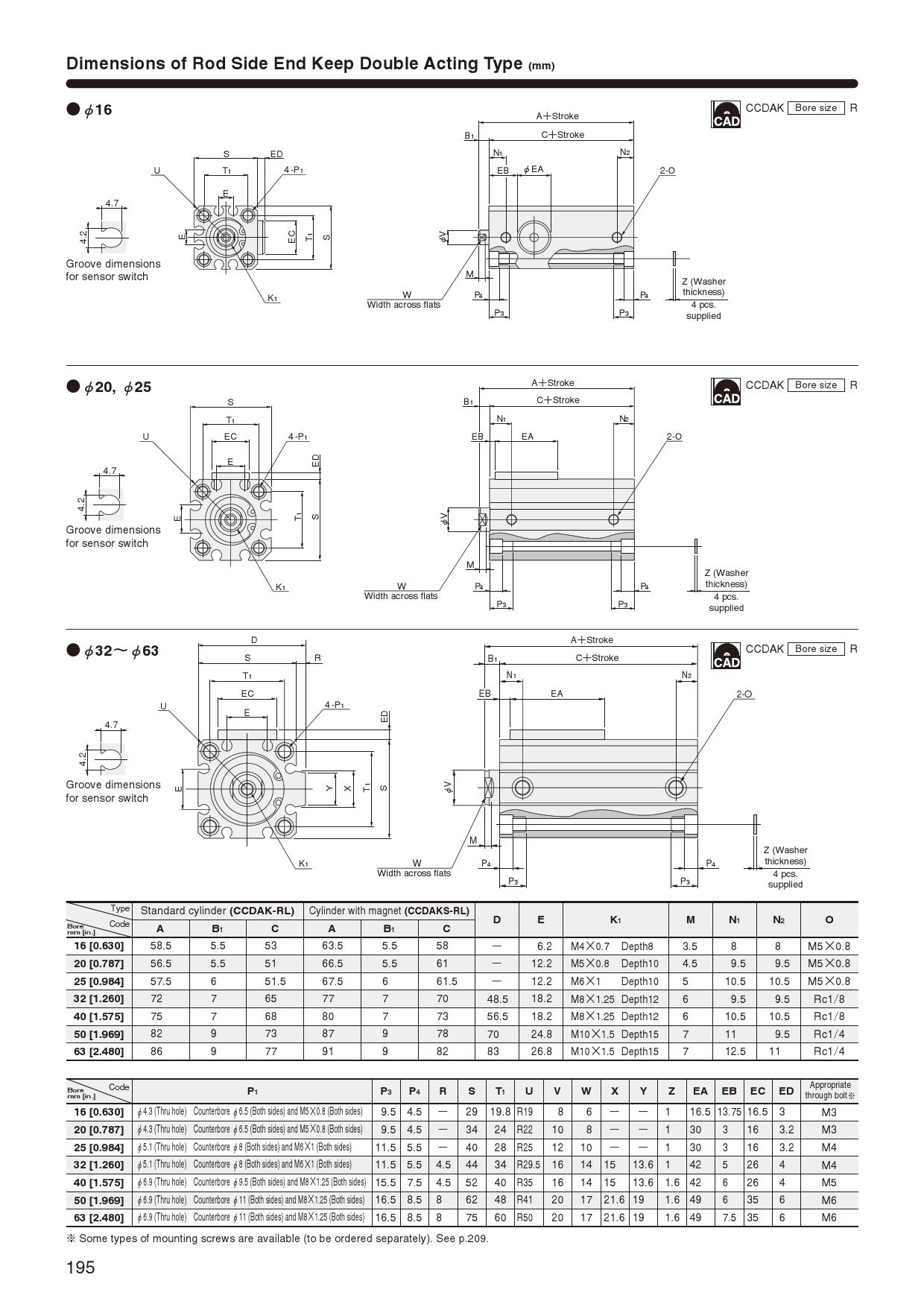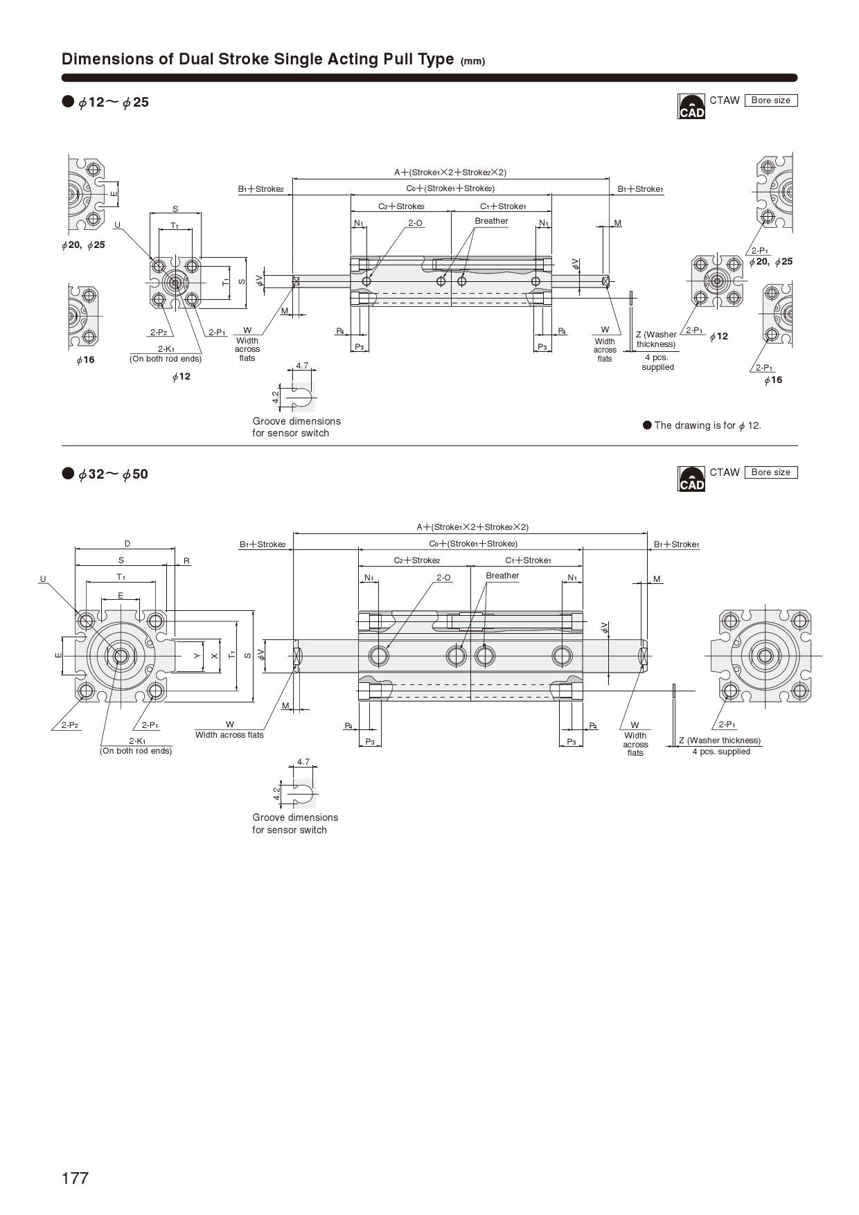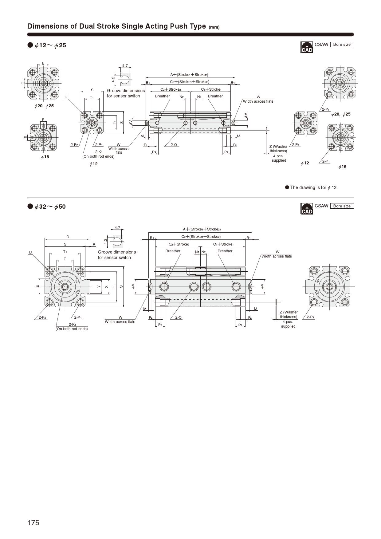 ※CAD: In the case of cylinders that can be equipped with a sensor, sensor-equipped CAD drawings may be downloaded, even if a sensor is not selected.