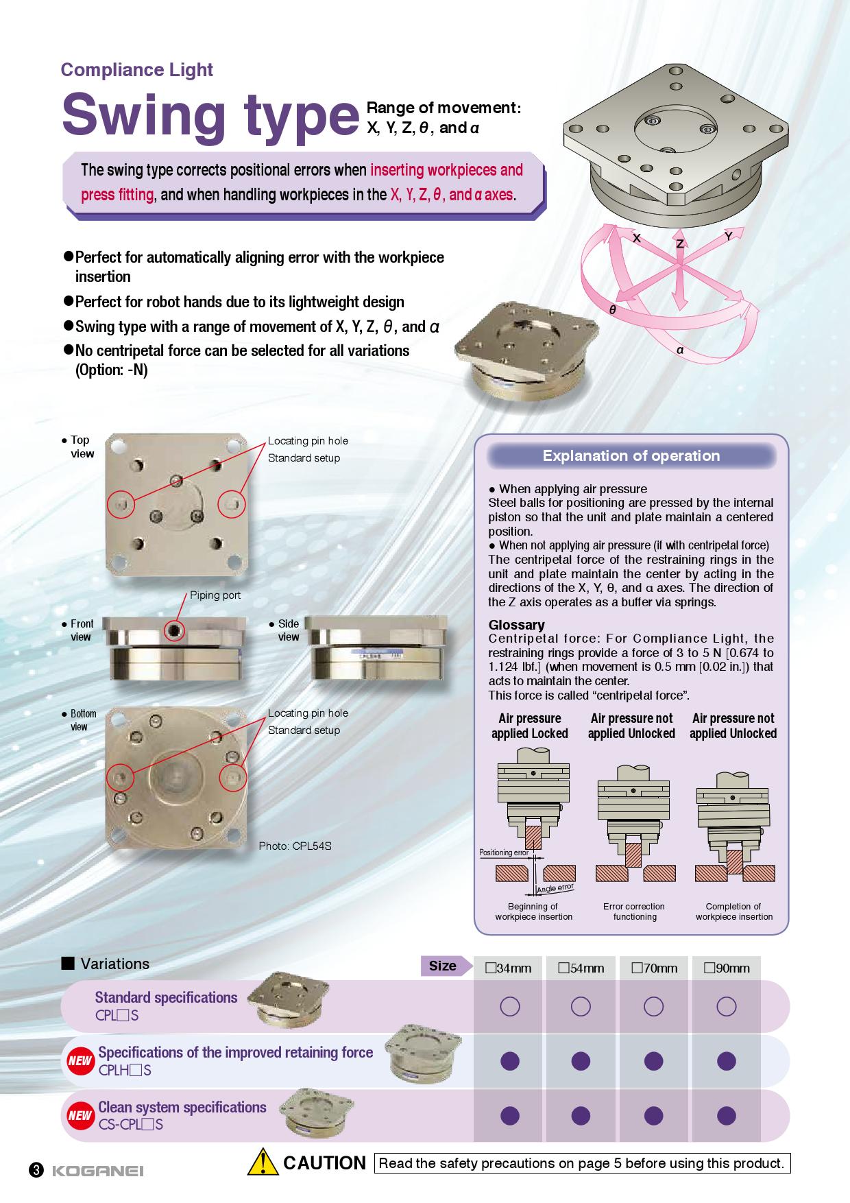 Compliance Light swing type,CPL34S,CPL54S,CPL70S,CPL90S