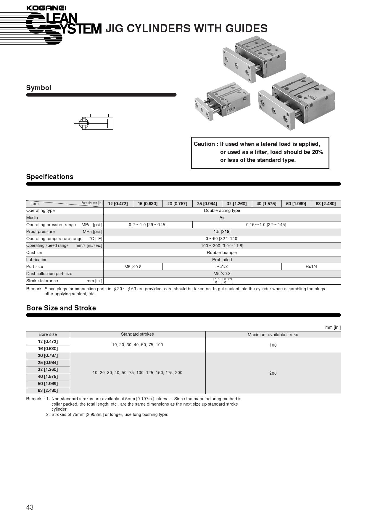 Jig cylinder with guides (clean equipment)