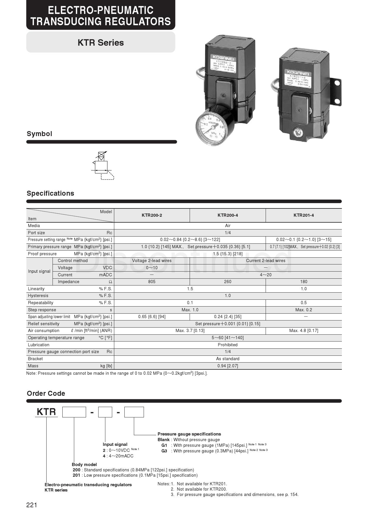 Vacuum regulator,KTR series,KTR200,KTR201