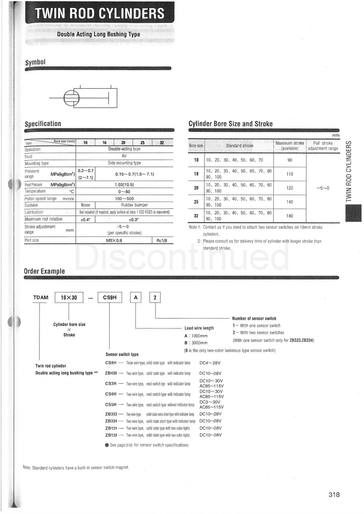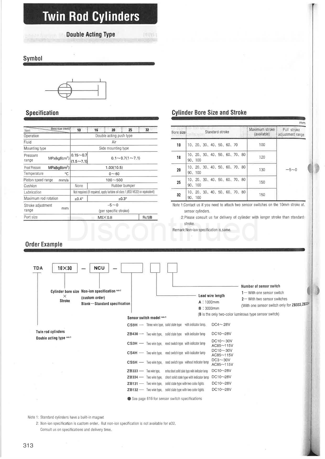 Twin rod cylinder,TDA10,TDA16,TDA20,TDA25,TDA32,TDAM10,TDAM16,TDAM20,TDAM25,TDAM32,TSA10,TSA16,TSA20,TSA25