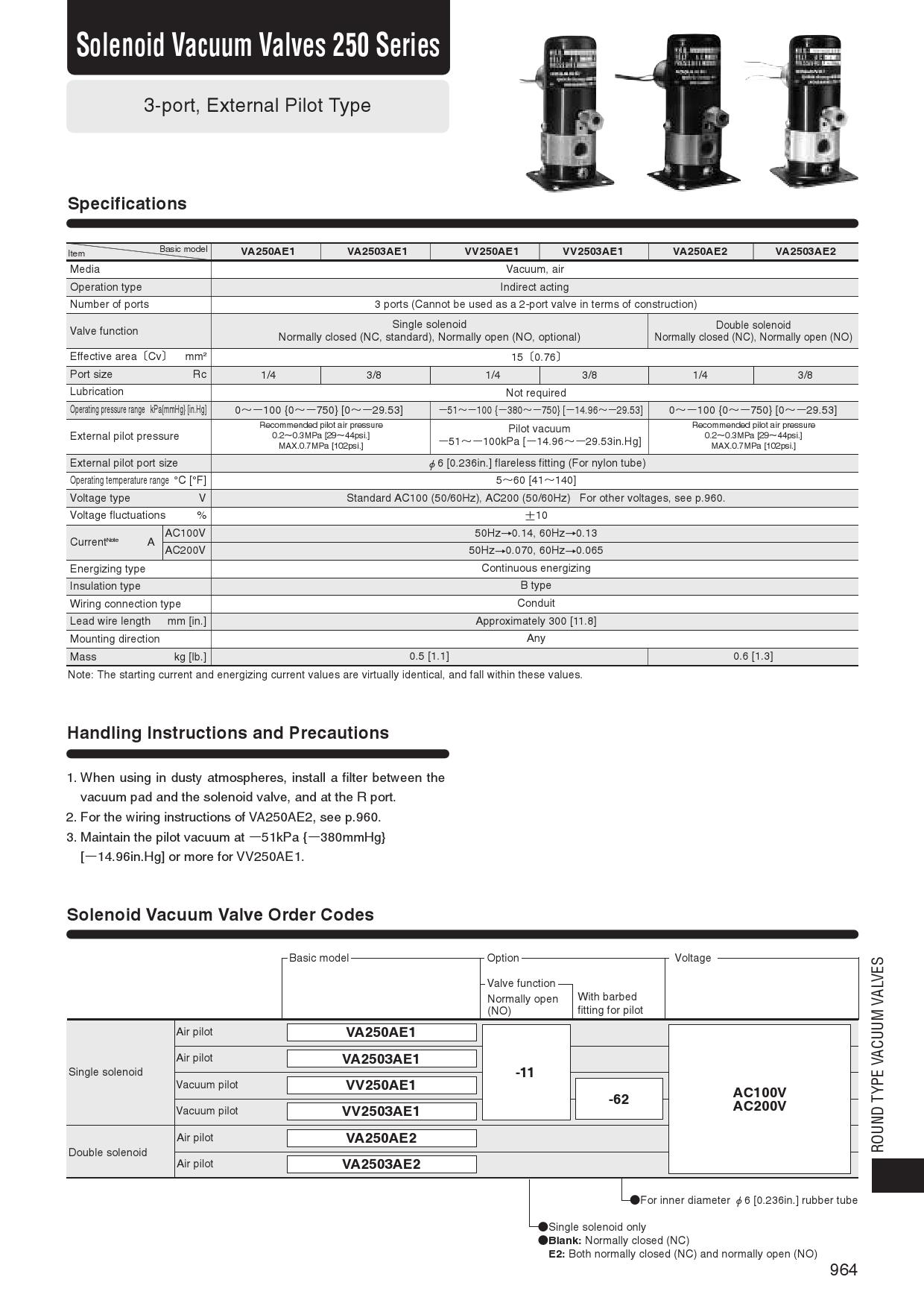 Round type solenoid valve VA250 Series